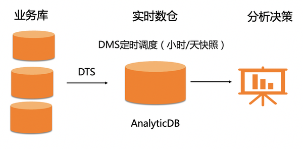 以某银行为例,该银行采用一站式敏捷数据仓库方案构建实时数仓,以支持各业务线高效、定制的分析和决策需求。DMS集成DTS非侵入式实时日志解析能力,进行数据实时入仓,极大降低了数据同步过程中对业务系统的资源消耗,对业务操作零干扰,大幅降低实时数仓建设难度。此外,方案助力该银行按T+1(小时)频率快速生成快照表,千万数据级快照只需3分钟,结合ADB对海量数据的毫秒级交互式分析能力,进一步提升了实时数仓对分析决策的支撑效率。